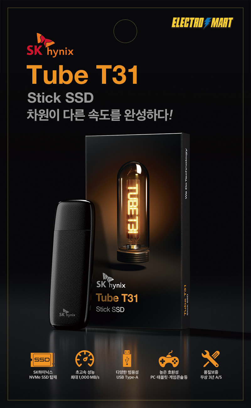 [일요주간 = 이수근 기자] SK하이닉스의 국내 공식 대리점 도우정보(대표 조기수)는 SK하이닉스의 최신 스틱형 SSD 제품인 ‘튜브(Tube) T31’(이하 T31)을 전국 일렉트로마트 매장을 통해 판매한다고 2일 밝혔다.