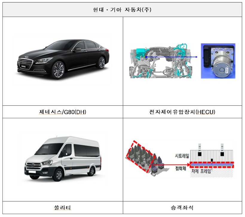 - 국토부, 현대·기아차 제작 판매 4개 차종 70만583대 제작결함 발견