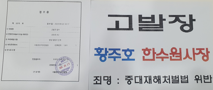 이와 관련 월성1호기 공정재판감시단(단장 강창호), 행·의정 감시 네트워크 중앙회(회장 김선홍), 자유대한호국단(단장 오상종), 황재훈 변호사 등 시민단체들은 20대 직원이 극단적 선택을 한 데 따른 진상규명 조치로 지난 25일 오전 10시 서울중앙지검 앞에서 기자회견을 개최하고 황주호 한수원 사장을 ‘중대 재해 처벌 등에 관한 법률’(이하 중대재해법) 위반으로 고발했다고 밝혔다.