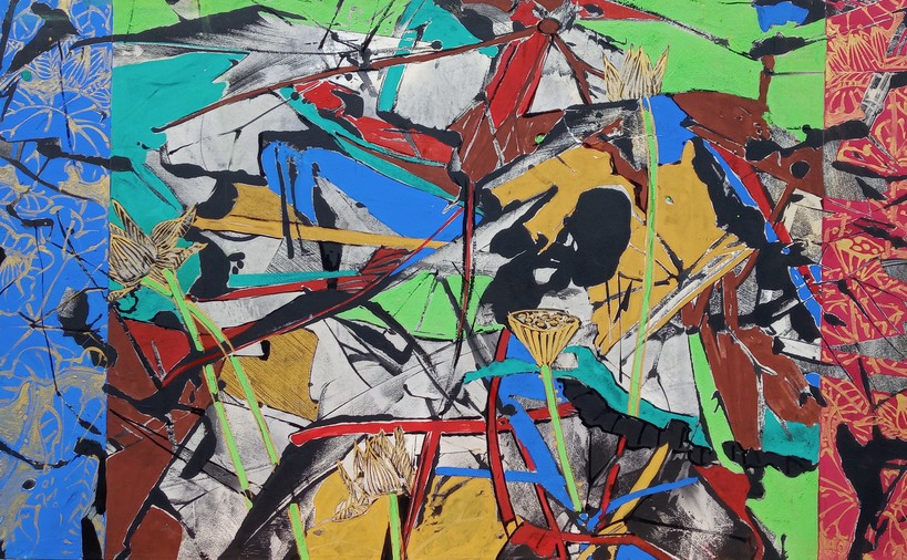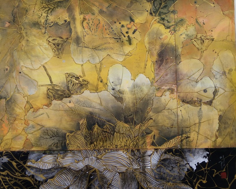 ▲ ‘사유원형~무위’ 연꽃을 통해 세상을 투시. 판화를 접목하여 모든 형상의 존재를 다양한 색채로 추상적으로 구성.