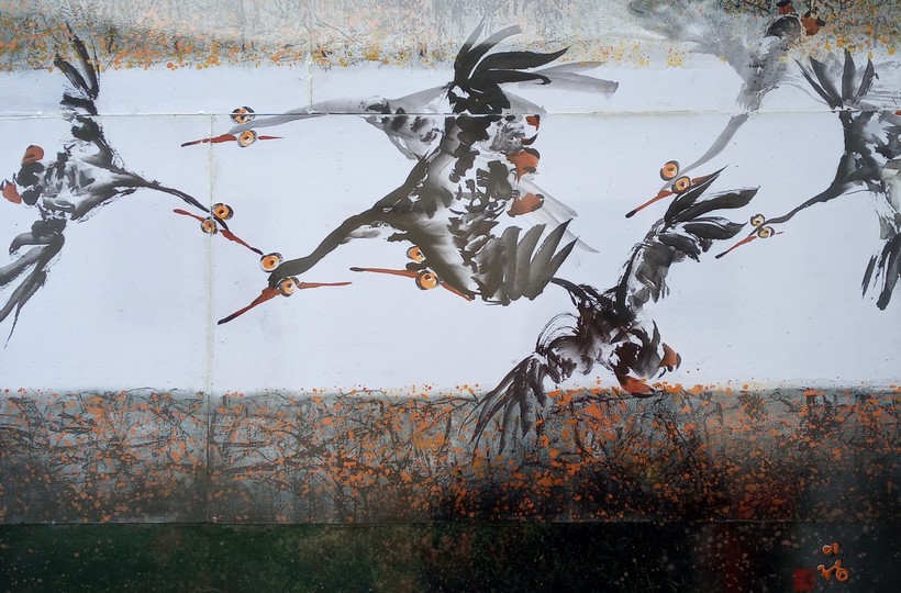 ▼ 물론 스승의 영향력이 컸지만, 원무(圓舞) 시리즈로 표현했다. 둥글게 춤추고 노래하는 기러기 무리가 마치 교향악을 연주하는 듯 화합하는 모습을 보여준다. 기러기가 상징하는 것은 바로 ‘사랑, 화합, 질서’이다.