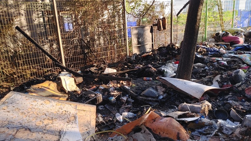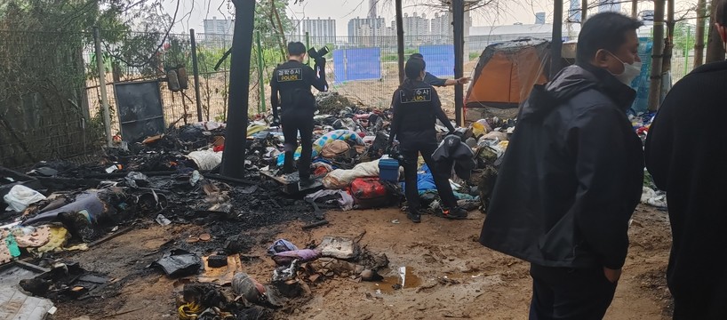 -5월 25일 화재 발생, 텐트 2개 동 소실…20년차 거주민 “입은 옷 이외 전부 탔다”허탈