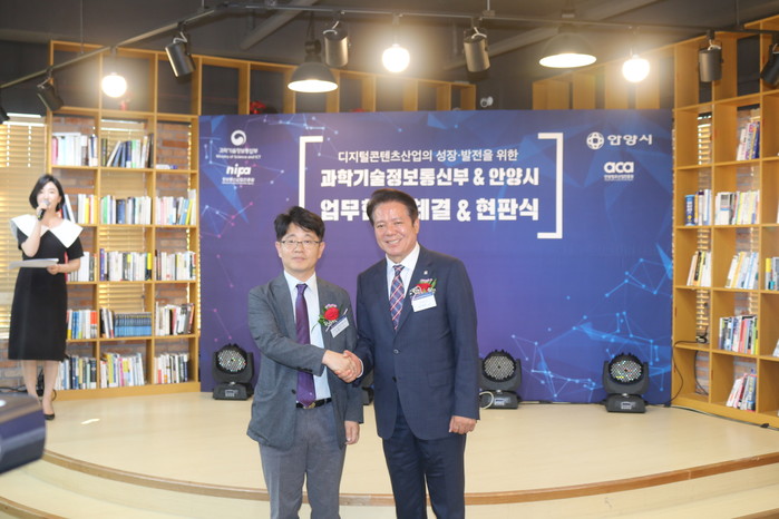 이를 위해 과기정통부는 안양시와 ‘스마트콘텐츠센터’의 기능개선과 디지털콘텐츠 중소기업의 지원 강화를 위해 24일 ‘디지털콘텐츠 산업의 성장·발전을 위한 업무협약’을 체결했다며 25일 이와 같이 밝혔다.
