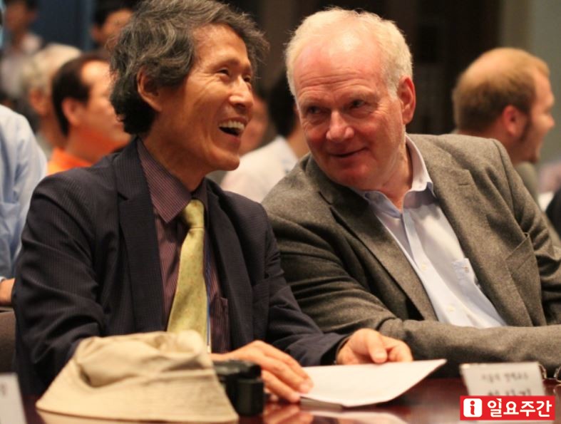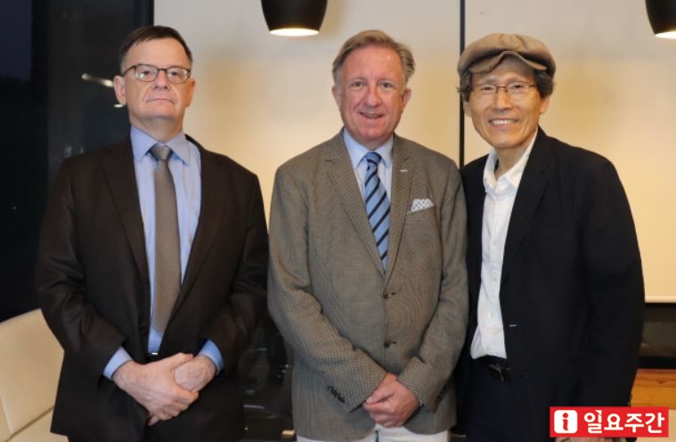 ▲ 러시아 출신 한반도 전문가인 ‘안드레이 란코프’ ‘붉은 왕조’ 저자인 ‘파스칼 다예즈 뷔르종’과 함께(왼쪽부터)