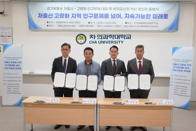 차 의과학대는 포천시(백영현 시장)·동두천시(박형덕 시장)·연천군(김덕현 군수)과 함께 저출산 및 고령화 문제 해결을 위해 만든 ‘생애주기 바이오 혁신 협의체’가 지난 12일 출범했다고 20일 밝혔다.