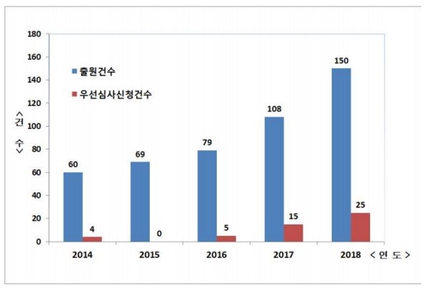 출원건수만 증가한 것은 아니다. 빠른 기술변화에 따른 특허권 선점 또는 조기확보를 위해 우선심사 신청 비율도 증가하는 추세다.