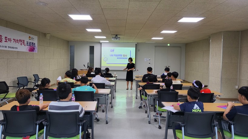 ▲ 8.8(화) 한국도로공사 본사에서 아동들을 대상으로 학습유형 검사를 진행하고 있다. (사진=도로공사) |