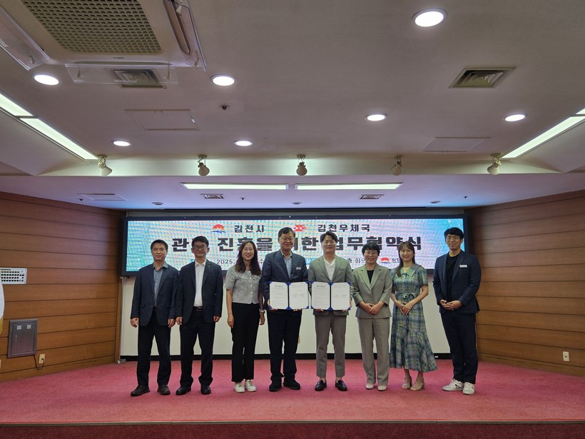 [일요주간=최부건 기자] 김천시와 김천우체국은 지난 10일 김천시청에서 지역 관광진흥을 위한 업무협약(MOU)을 체결했다고 밝혔다. 이날 협약식에는 윤상영 김천시 경제관광국장과 김상호 김천우체국장을 비롯한 양 기관 관계자들이 참석해 관광 활성화 및 상호 협력 방안을 논의했다.