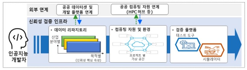 또 기술·재정적 상황이 열악한 스타트업 등도 체계적으로 신뢰성을 확보해 나갈 수 있도록 AI 구현을 위한 ‘데이터 확보→ 알고리즘 학습→ 검증’을 통합 지원하는 플랫폼을 운영한다.