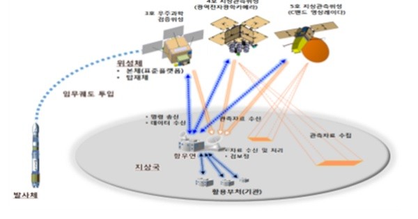 ▲ 차세대중형위성 3, 4, 5호 시스템 구성도.(과학기술정보통신부 제공) |