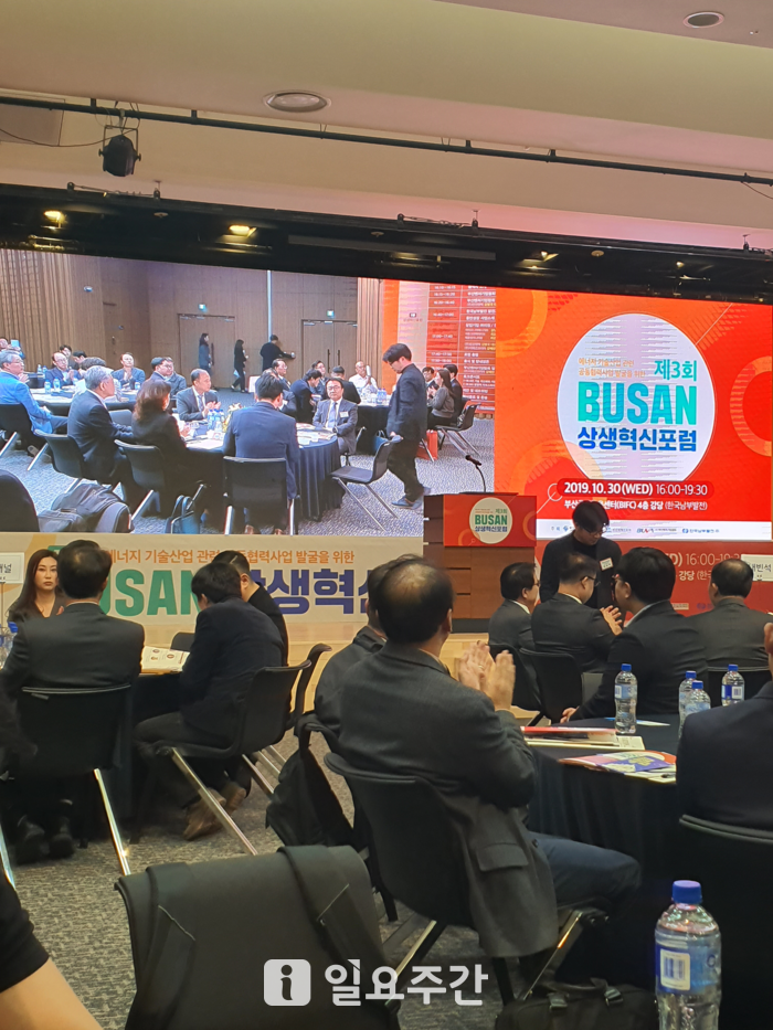 [일요주간 = 김쌍주 대기자] 부산광역시(시장 오거돈)가 주최하고 (재)부산경제진흥원(원장 박기식)과 (사)부산벤처기업협회(회장 이상준)가 공동으로 주관하는 ‘제3회 부산 상생혁신포럼’이 부산벤처기업협회 회원사와 부산지역 창업기업대표 100여 명이 참석한 가운데 30일 오후 4시부터 9시까지 부산 남구 문현동 부산국제금융센터 4층 대강당에서 개최됐다.