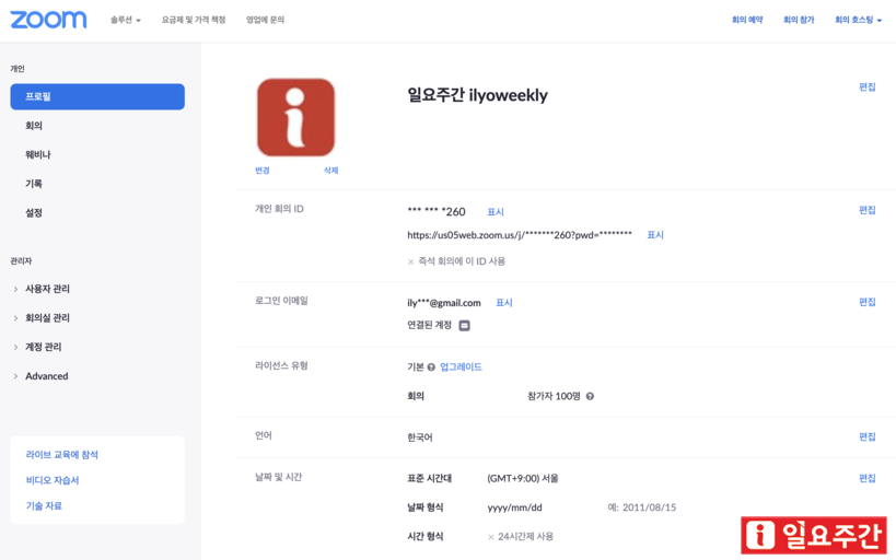 ▲ 화상회의 시스템으로 잘 알려진 줌의 개인 설정 화면 (이미지 편집=일요주간)