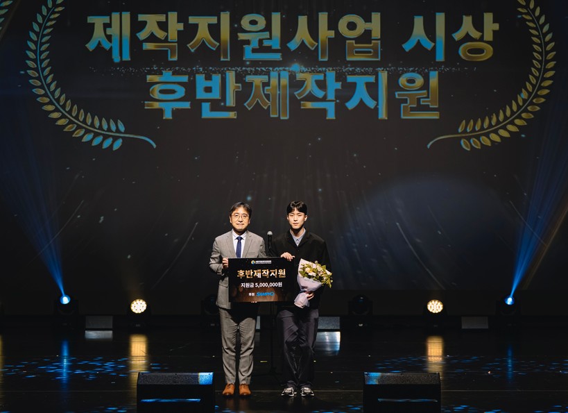 ▲ 지난 17일 은평문화예술회관 대공연장에서 열린 ‘제13회 서울국제어린이영화제(SICFF)’ 폐막식에서 유용재 삼표그룹 사회공헌단 상무(사진 왼쪽)가 심사를 통해 선정된 단편 영화에 대한 시상을 진행하고 있다. (사진=삼표그룹) |