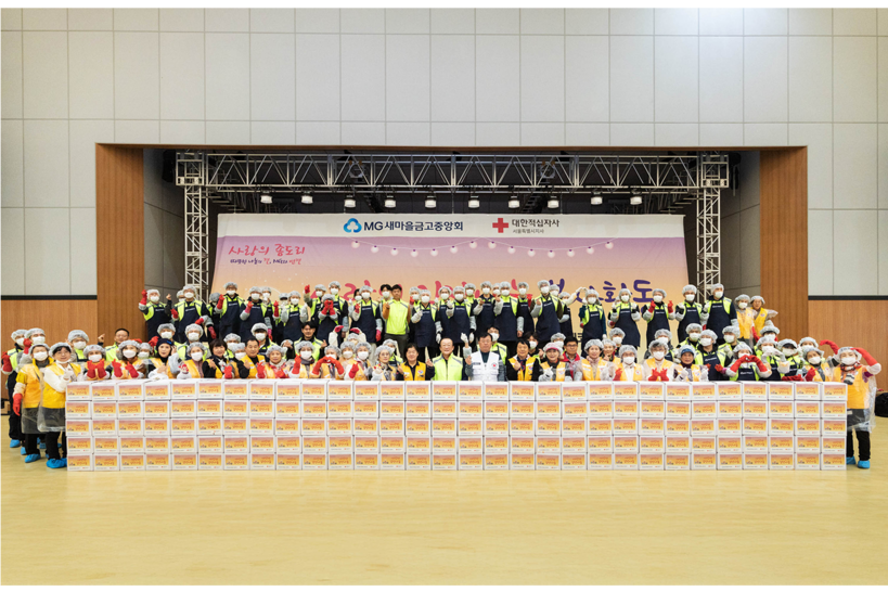 행사에는 김인 새마을금고중앙회장과 권영규 대한적십자사 서울지사장을 비롯해 중앙회 임직원 80여 명, 적십자 봉사단 30여 명 등 총 110명이 참여해 한 뜻으로 행사장을 채웠다.