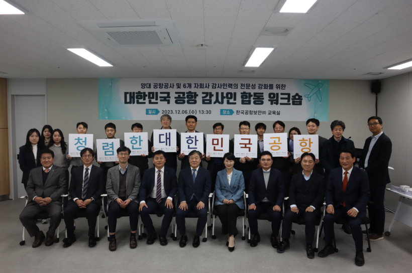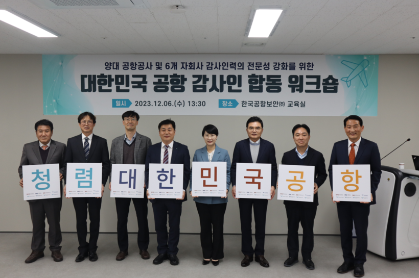 [일요주간=김영란 기자] 한국공항공사(사장 윤형중)는 지난 6일, 서울 강서구 한국공항보안㈜ 본사에서 인천국제공항공사, 양 기관 자회사와 감사업무 역량 강화 및 교류 협력을 위한 '대한민국 공항 감사인 합동 워크숍'을 개최했다.