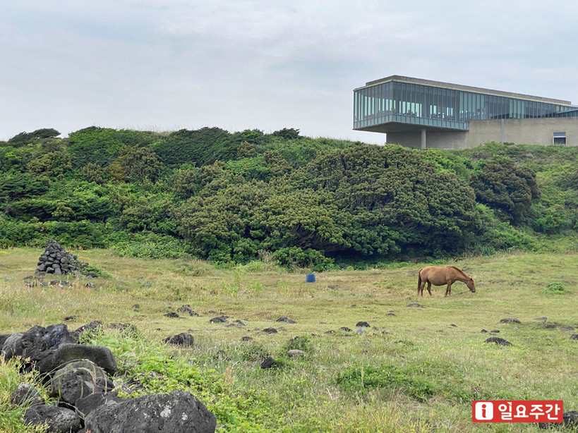 서귀포시 성산읍 고성리에 위치한 안도 다다오의 글라스 하우스 앞 울창한 초원에서 한 마리 말이 제주의 여름을 우리 대신 만끽하고 있는 듯하다. 하루빨리 코로나 19가 안정세로 접어들어, 예전의 활기찬 제주의 모습이 되길 바라는 바이다.
