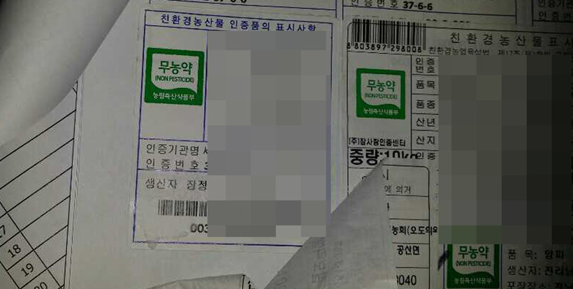 ▲ 농산물에 부착된 무농약 인증 스티커. (사진=newsis) |