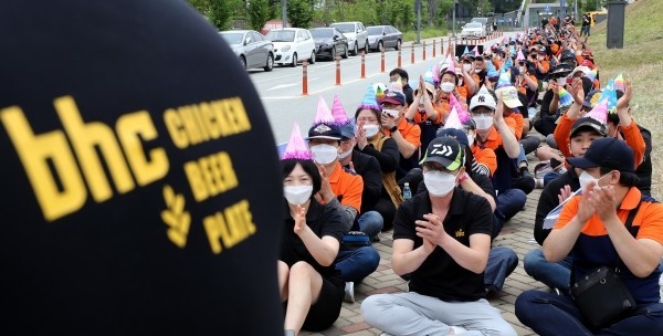 | ▲ 치킨 프랜차이즈인 BHC 가맹점주들이 지난 2018년 6월14일 공정거래위원회 앞에서 본사의 불공정행위 개선을 촉구하며 집회를 열고 있는 모습.(사진=newsis) |