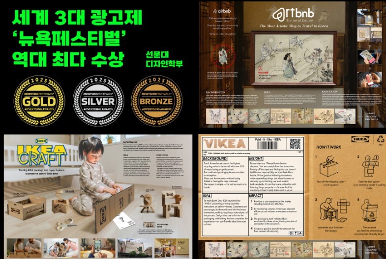 [일요주간 = 김성환 기자] 선문대학교(총장 문성제) 디자인학부가 세계 3대 광고제 중 하나로 꼽히는 ‘2025 뉴욕페스티벌(NEW YORK FESTIVALS)’에서 역대 최다 수상의 영예를 안았다.