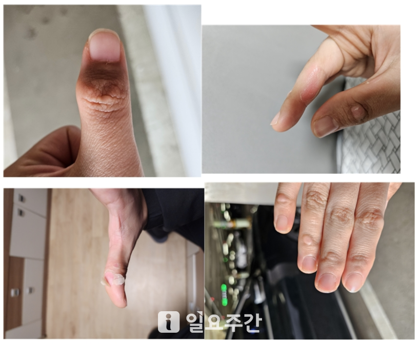▲ 삼성전자 기흥사업장 반도체 제조 여성 노동자들의 실제 손가락 사진. (사진=전국삼성전자 노동조합 제공)