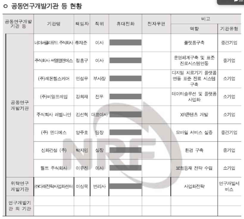 해당 사업은 한양대학교가 주관(1세부과제)하고 서울대학교(2세부과제), 삼성서울병원(3세부과제), 신화건설과 네이버클라우드등 민간기업(4세부과제)이 참여하고 있으며 한양대학교 김형숙 교수가 총괄책임자로 사업을 이끌고 있다.