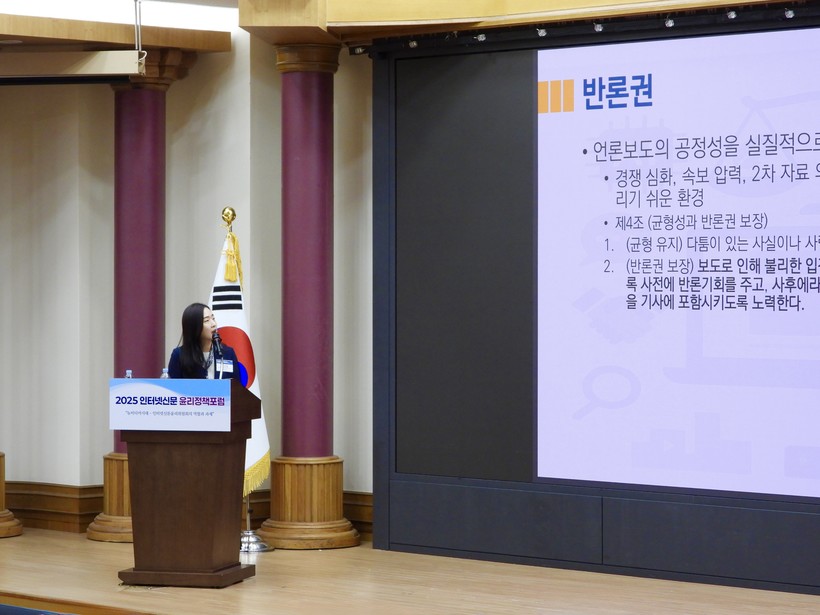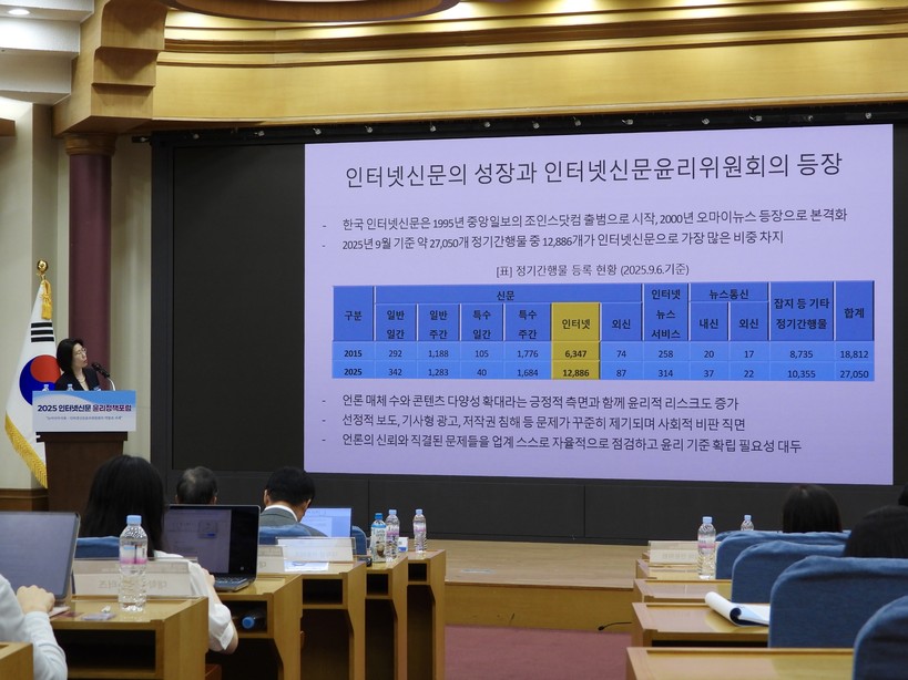 [일요주간=김성환 기자] 인터넷신문윤리위원회(위원장 이재진, 이하 인신윤위)는 9월 17일 국회의원회관 제1소회의실에서 이연희 국회의원(더불어민주당·청주 흥덕구)과 공동으로 「2025 인터넷신문 윤리정책포럼 – 뉴미디어 시대, 인터넷신문윤리위원회의 역할과 과제」를 개최했다. 이번 포럼은 인터넷신문의 윤리 문제와 자율규제 실효성 강화 방안을 모색하기 위해 마련됐다.