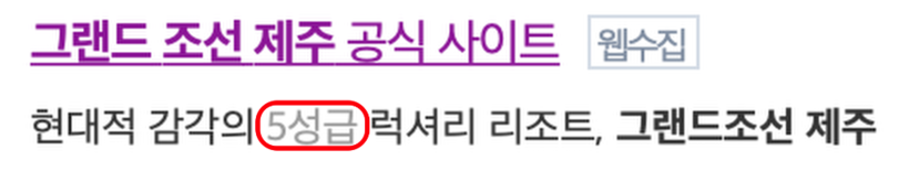 ▲ 포털사이트 다음에 게시된 그랜드조선 제주 관련 언론보도에서 '5성급' 호텔로 보도된 것을 확인할 수 있다.(사진=다음 캡쳐) |
