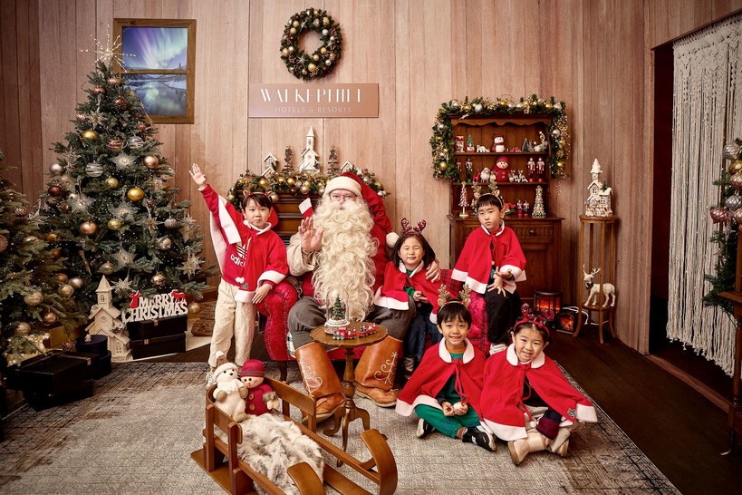| ▲ 산타와 어린이들이 산타 캐빈에서 함께 기념 촬영을 하고 있다. (사진= 워커힐 호텔앤리조트) |