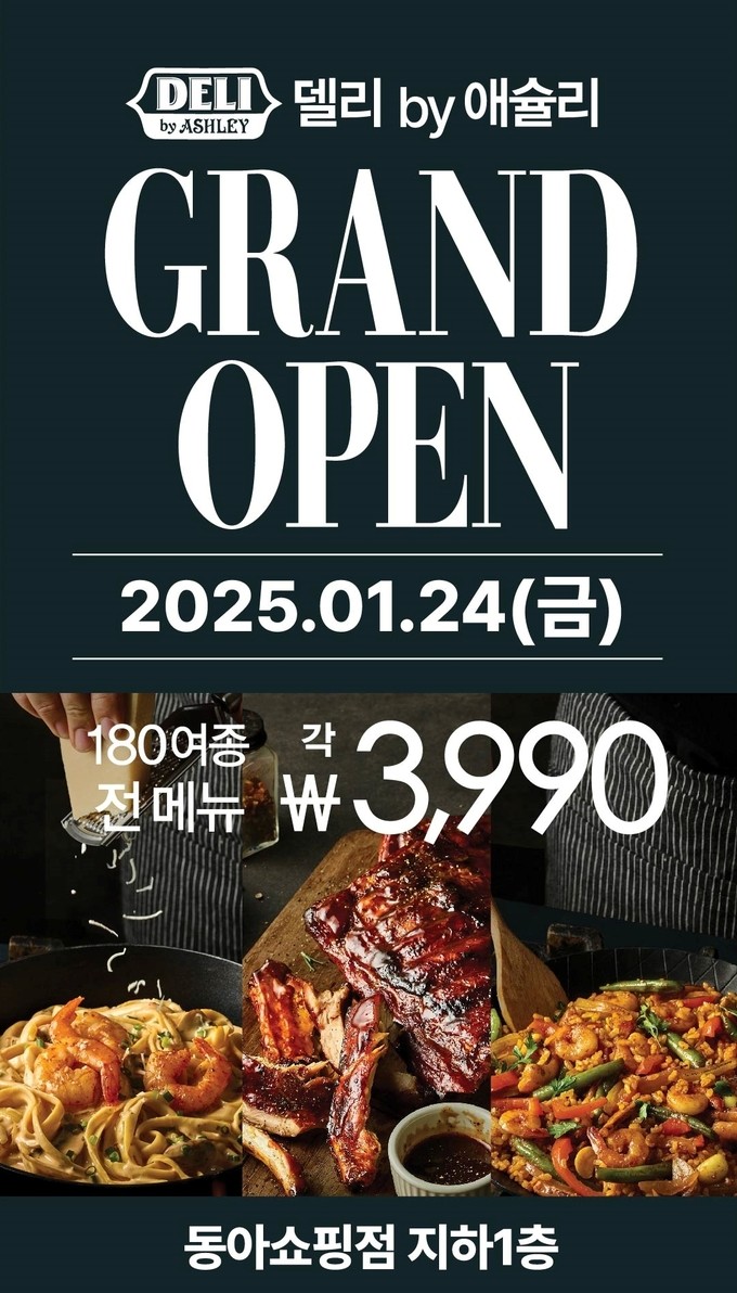 이날 동아백화점 쇼핑점은 지하 1층 약 1058㎡ 규모의 식품관을 푸드, 델리, 델리 바이 애슐리로 구성된 ‘델리 그라운드’로 전체 리뉴얼하고 각 지역의 유명 맛집을 포함해 총 17개 식음(F&B) 브랜드를 입점했다.