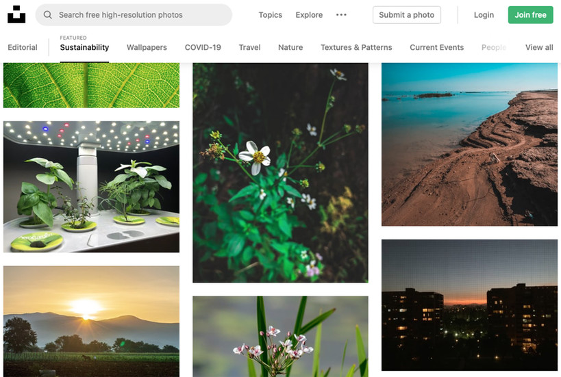 언스플래쉬는 크리에이티브 커먼즈 제로 라이센스를 통해 누구나 고품질 이미지를 공유할 수 있도록 해 주는 웹 사이트로, 전 세계 사진 작가들로부터 이미지를 받아 제공 중이다.