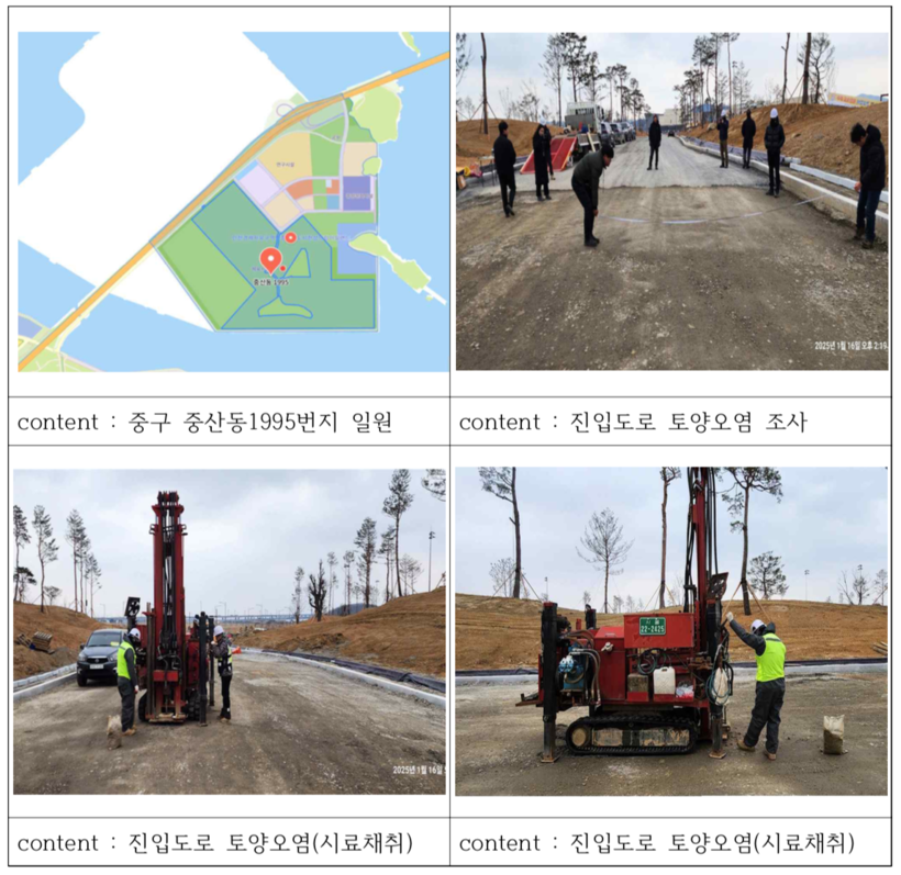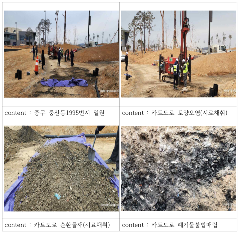 그러면서 "1월 16일 경제청과 중구청에서 토양 오염이 없다고 발표한 부분은 시료 채취에 문제가 있다. 저희가 (전문기관을 통해) 조사한 구역은 카트도로의 심도 1m 부분이다. 현재 폐기물이 매립돼 있던 그 위치다"며 "심도 1m 10cm~2m 토양을 조사 해야 되는데 (중구청 등이 의뢰한 조사는) 갯벌층(심도 3m~4m)을 조사했기 때문에 (1월 23일) 공문을 통해 재조사를 요구했다"고 밝혔다.