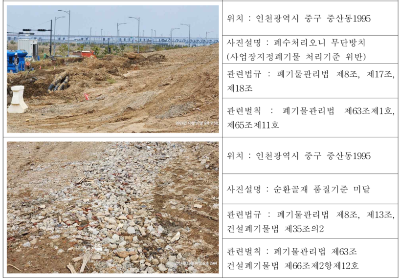 인천시와 중구청 등에 따르면 경제자유구역청, 시공사(디에스종합건설) 입회하에 지난 1월 21일 '폐기물 매립양 파악을 위한 2차 조사'를 위해 토양(7개 지점 굴착)을 채취한 결과 사업장폐기물로 추정되는 폐기물 매립이 확인됐다.