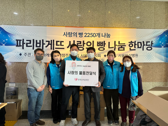 [일요주간 = 김성환 기자] SPC 파리바게뜨 가맹점주협의회 서울남부지회가 6일 서울아산병원 소아병동을 찾아 2250개(438만 원 상당)에 달하는 사랑의 빵 전달식을 가졌다.