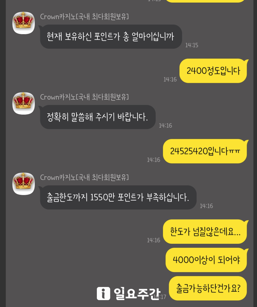 운영자는 “출금하려고 하니 대리 배팅 의혹 아이디로 분류가 돼 있어 1600만 원을 더 입금해야 한다”며 추가 입금을 요구했다.