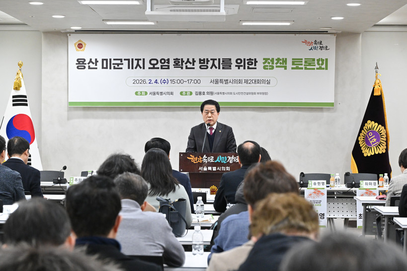 [일요주간 = 최종문 기자] 서울특별시의회 도시안전건설위원회 부위원장으로 활동하고 있는 김용호 시의원(국민의힘, 용산1)은 지난 4일 서울특별시의회 별관 제2대회의실에서 ‘용산 미군기지 오염 확산 방지, 시민 건강 및 안전 보호를 위한 정책 토론회’를 개최했다. 이날 토론회에서는 용산 미군기지 일대 토양·지하수 오염 문제에 대한 전문가 의견과 관련 제도적 쟁점이 논의됐다.