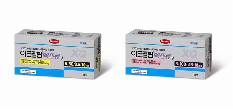 | ▲ ‘아모잘탄엑스큐’ 저용량 2종(5/50/2.5/10mg, 5/100/2.5/10mg) (사진=한미약품) |