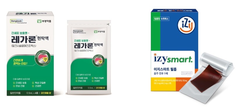 ▲ 동국제약의 (좌)레가론 현탁액, (우)이지스마트 필름 (사진=동국제약)
