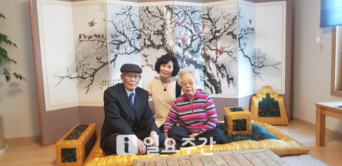 ▲ 지촌 허룡 선생, 허정자 관장, 모친 우옥분 여사와 함께