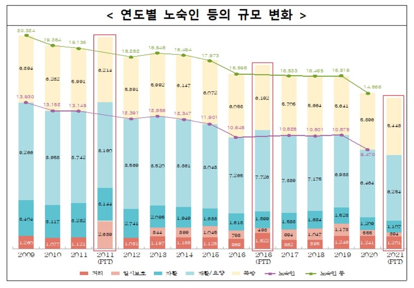 ▲연도별 노숙인 등의 규모 변화. (사진=보건복지부)