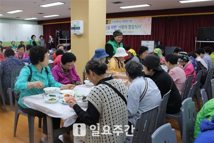 | ▲ 매월 셋째 화요일, 한마음의 날 점심식사를 하시는 어르신들 |
