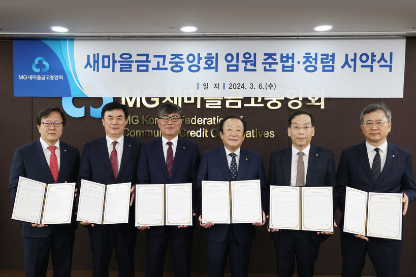 [일요주간 = 김완재 기자] 새마을금고중앙회(회장 김인)는 6일 서울시 강남구 본부 회관에서 김인 회장 및 상근임원진이 참석한 가운데 ‘준법·청렴 서약식’을 개최했다고 밝혔다.