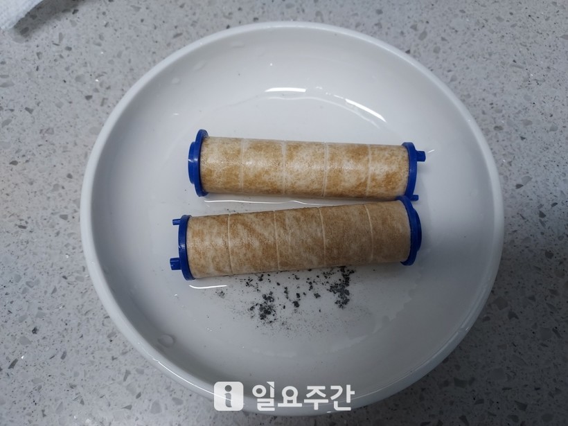 [일요주간 = 이수근 기자] “전기온수기를 설치한 이후 물에서 이상한 냄새와 녹물맛이 찐하게 나서 새 제품이라서 그런가 하며 물을 여러 차례 순환을 시키고 흰색 물그릇에 물을 밭쳐서 보니, 녹물과 이물질 찌꺼기가 많이 나왔다. 마트에 가서 필터가 장착된 싱크대용 헤드를 구입해 설치했더니 하얀 필터에 녹물과 이물질이 걸러진 게 확연하게 보였다.”