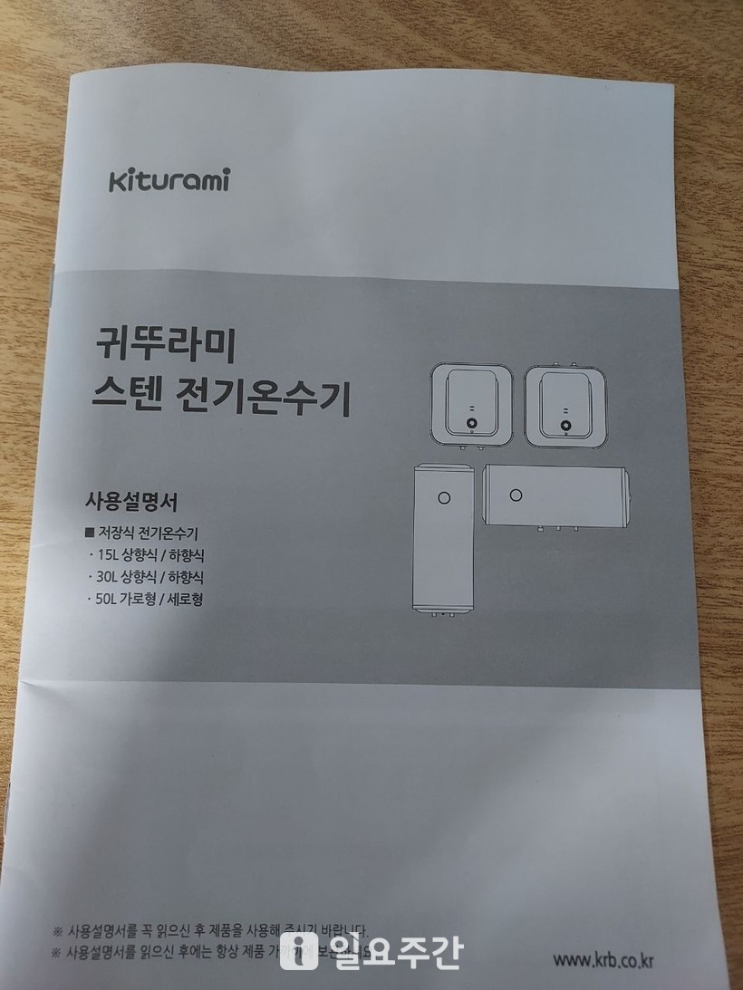 ▲귀뚜라미 스텐 전기온수기 설명서.(사진=제보자 제공) |