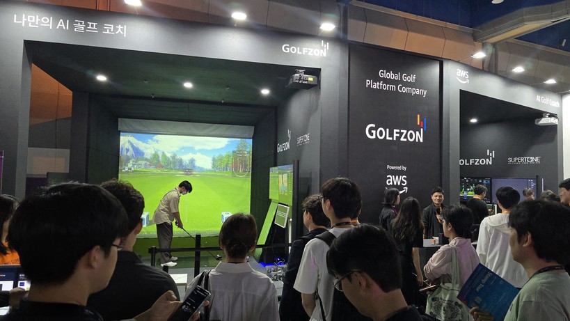 | ▲ 골프존이 5월 14~15일 서울 강남구 코엑스에서 열린 ‘AWS 서밋 서울 2025’에서 AI 골프 코칭 서비스를 소개하고 성황리에 참가를 마쳤다고 밝혔다. 사진은 골프존 부스 모습. (사진=골프존 제공) |