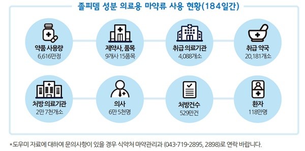 이번 서한은 의료용 마약류 중 사용량이 많은 ‘졸피뎀’(향정신성의약품, 수면제)에 대해 마약류통합관리시스템을 통해 지난해 6월부터 12월까지 6개월 간 수집한 529만건의 처방자료를 의사 별로 분석한 내용을 담고 있다.
