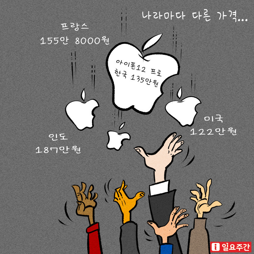 아이폰 12프로의 경우 국내 출시가격은 135만원이다. 미국내 판매가격을 환율에 맞춰 계산하면 122만원이니 상대적으로 13만원 가량 높다.