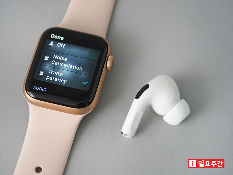 ▲노이즈 캔슬링과 주변음 차단, 애플 워치를 통해 손쉽게 제어 (사진=지혜수 기자) |