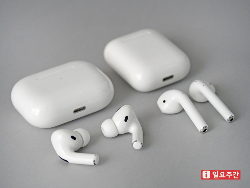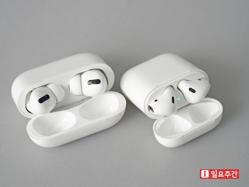 ▲1세대 에어팟과 애플 에어팟 프로 비교샷 (사진=지혜수 기자) |