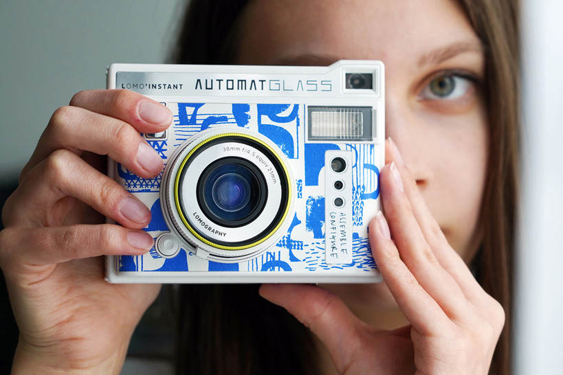 로모 인스턴트 오토맷 글래스의 새로운 에디션 '어셈블 컨피겨' 카메라는 영국의 의류 디자이너 로라 슬레이터(Laura Slater)와 협업한 제품으로, 그녀만의 독특한 패턴이 프린트되어 있는 것이 특징이다.