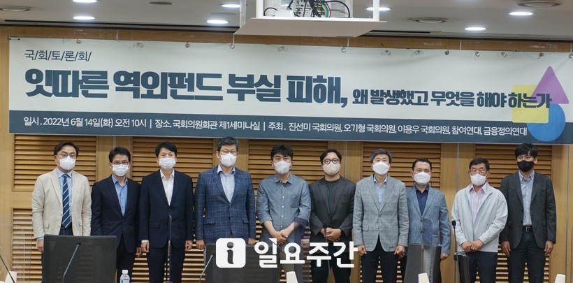 ▲지난 14일 서울 여의도 국회의원회관 제1세미나실에서 '잇따른 역외펀드 부실 피해, 왜 발생했고 무엇을 해야 하는가'를 제목으로 한 토론회가 열렸다. <사진=성지온 기자> |
